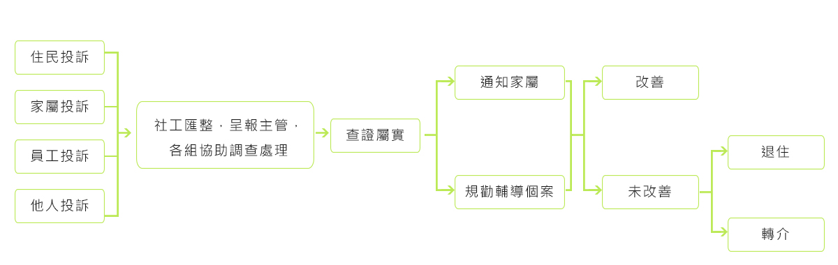 - 遵守中心生活公約,且無暴力、攻擊等影響團體生活情事。
